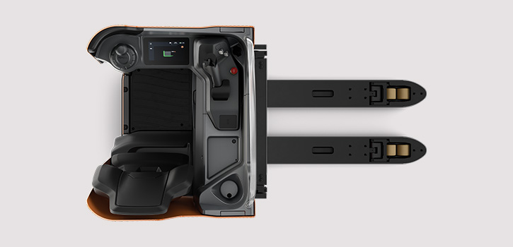 Gli operatori beneficiano di un vano operatore ergonomico di nuova concezione. Il design intelligente include controlli facili da raggiungere. L'intuitivo display touchscreen e la sedia regolabile in posizione seduta/eretta rendono l'esperienza di guida confortevole e sicura.